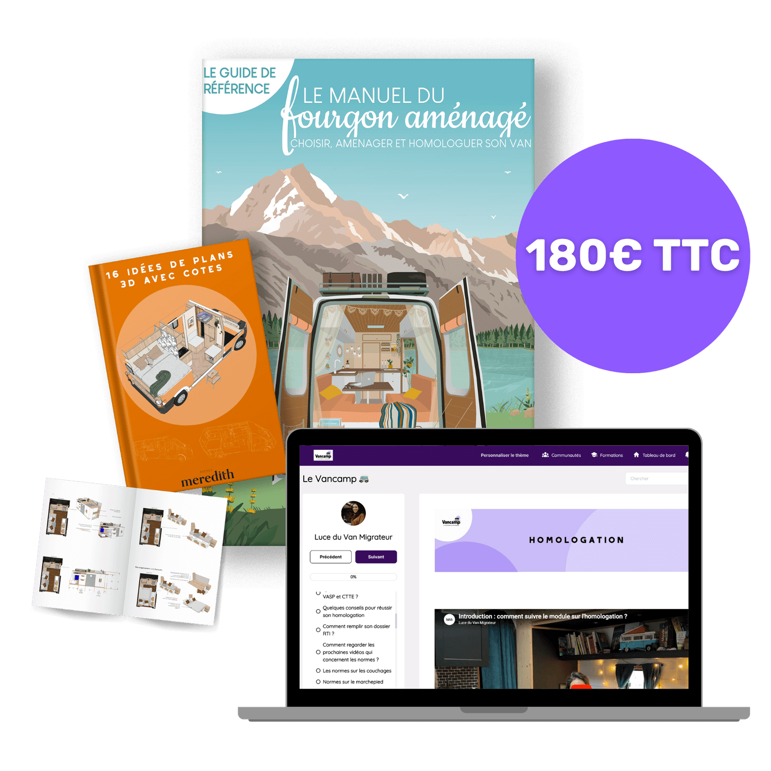 180 € TTC, pour 3 mois d'accès au Vancamp + le manuel du fourgon aménagé